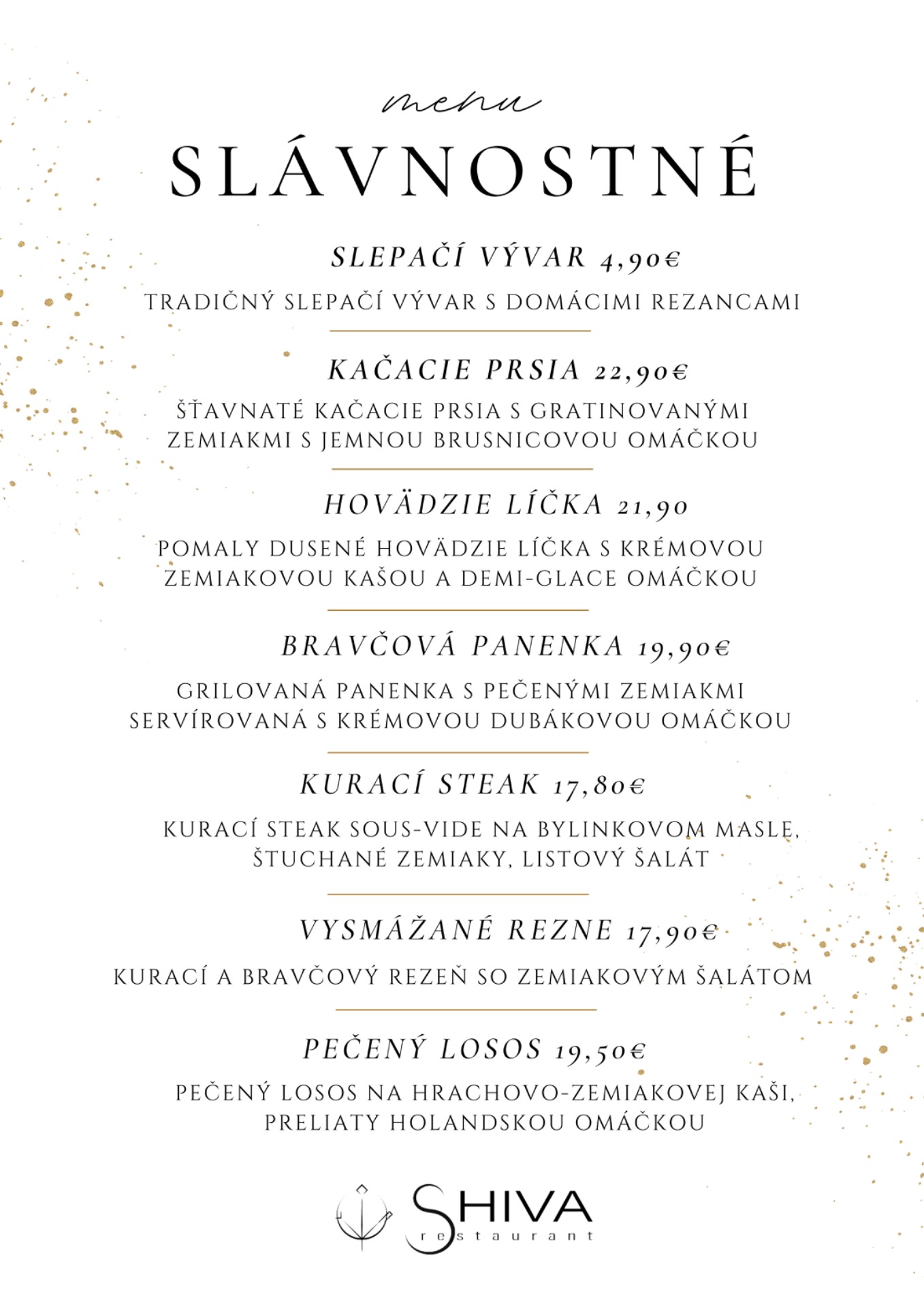 Pripravíme pre vás slávnostné menu na mieru, ktoré odzrkadlí vašu predstavu aj chute vašich hostí. Či už túžite po elegantnej tradičnej večeri, bohatom bufete alebo niečom netradičnom, náš tím vám rád pomôže s výberom a zladením všetkých detailov.